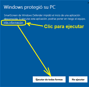 Si al correr el instalador aparece "Windows protegió su PC", de clic en Mas información para Ejecutar de todas formas. Ver mas